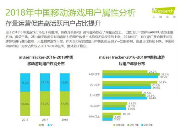 在艾瑞咨詢《2018年中國移動游戲行業(yè)報告》中,我們也發(fā)現(xiàn)30歲以下的用戶占比達到了56.6%。