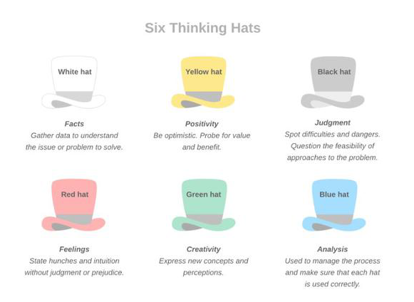 在六頂思考帽或者五大人格特征提到的案例是多元化思維的其他方式。因此,除了文化和性別,還有很多方法。