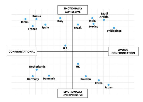Erin Meyer在她的《文化地圖(The Culture Map)》一書中列舉了這樣的案例:法國(guó)人和德國(guó)人在分歧中會(huì)更傾向于對(duì)抗和直接表達(dá),這可能會(huì)嚇到其他成員。而在亞洲文化中,人們傾向于在公開場(chǎng)所避免沖突以保持團(tuán)隊(duì)的和諧,哪怕他們對(duì)這個(gè)決定非常反對(duì)。