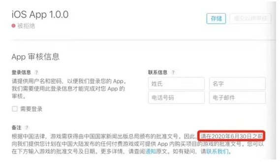 本周,有媒體報(bào)道,在蘋果最新發(fā)布的后臺(tái)審核規(guī)定中稱:“根據(jù)中國法律,游戲需獲得由中國國家新聞出版總局頒布的批準(zhǔn)文號(hào)。因此,請(qǐng)?jiān)?020年6月30日之前向我們提供您計(jì)劃在中國大陸發(fā)布的任何付費(fèi)游戲或可提供App內(nèi)購買項(xiàng)目的游戲的批準(zhǔn)文號(hào)。您可以在下方輸入游戲的批準(zhǔn)文號(hào)及日期。更多詳情,請(qǐng)查閱通知原文。如有疑問,請(qǐng)聯(lián)系我們。”