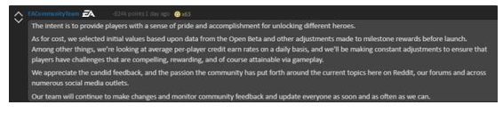 當(dāng)然后來EA服軟了,下調(diào)了解鎖點(diǎn)數(shù)以及氪金的數(shù)額,但是這種做法依然讓不少玩家選擇了退款,無論游戲再好也不接受。